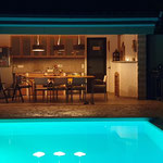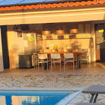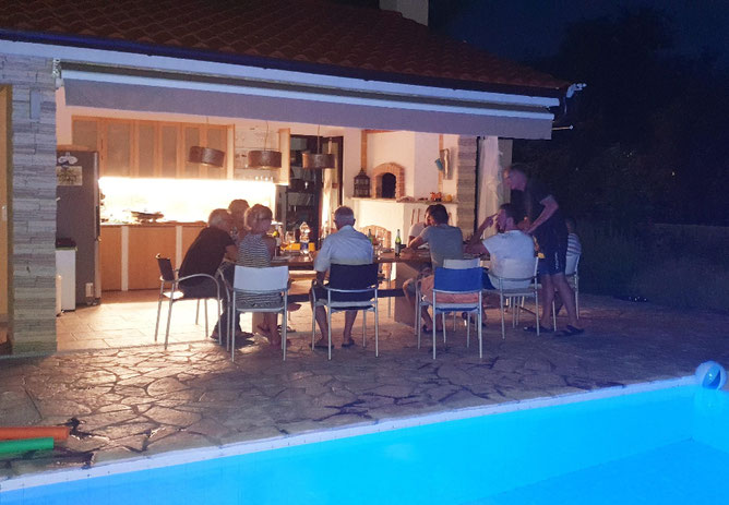 Die Konoba mit Außenküche am Pool steht allen Gästen zur Verfügung. Hier gibt es einen großen Gasgrill und einen "echten" Slow-Food-Pizzaofen der mit Holz zu befeuern ist. Feinschmecker können sich Pizza und allerlei frische Brotvarianten selber backen.