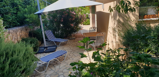 - Innenhof-Terrasse mit eigenen Liegen